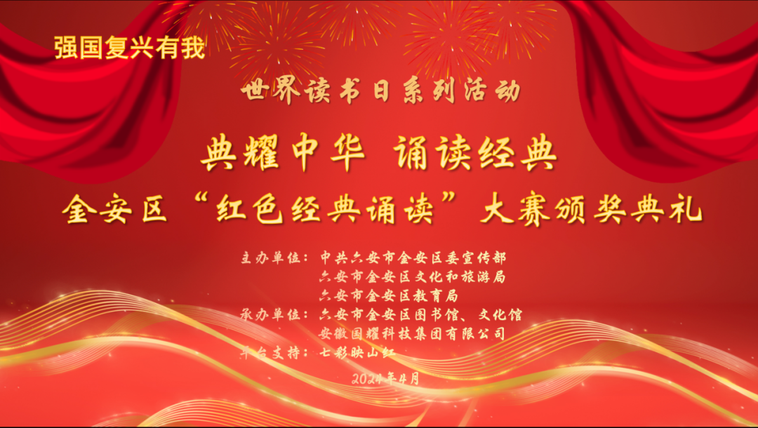 此次大賽以誦讀紅色經(jīng)典為主要內(nèi)容,通過(guò)誦讀的形式,讓金安區(qū)的中小學(xué)生更加深入地了解黨的光輝歷程和偉大精神,激發(fā)他們的愛(ài)國(guó)熱情,培養(yǎng)他們的家紅色經(jīng)典為主要內(nèi)容,通過(guò)誦讀的形式,讓金安區(qū)的中小學(xué)生更加深入地了解黨的光輝歷程和偉大精神,激發(fā)他們的愛(ài)國(guó)熱情,培養(yǎng)他們的家國(guó)情懷。