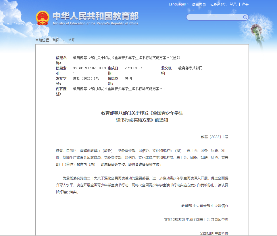 2023年3月,教育部官方發(fā)布《教育部等八部門(mén)關(guān)于印發(fā)<全國(guó)青少年學(xué)生讀書(shū)行動(dòng)實(shí)施方案>的通知》,其中具體實(shí)施中明確表示“倡導(dǎo)廣泛全面閱讀”,并對(duì)中小學(xué)、大學(xué)階段閱讀類(lèi)目進(jìn)行明確......