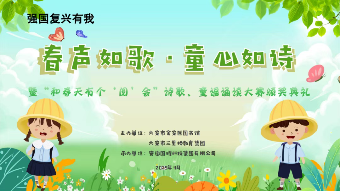 2025 年 4 月 12 日下午,“春聲如歌·童心如詩”暨“和春天有個‘閱’會”詩歌童謠誦讀大賽頒獎典禮在六安市三里橋小學(xué)光明路校區(qū)報告廳圓滿舉行。