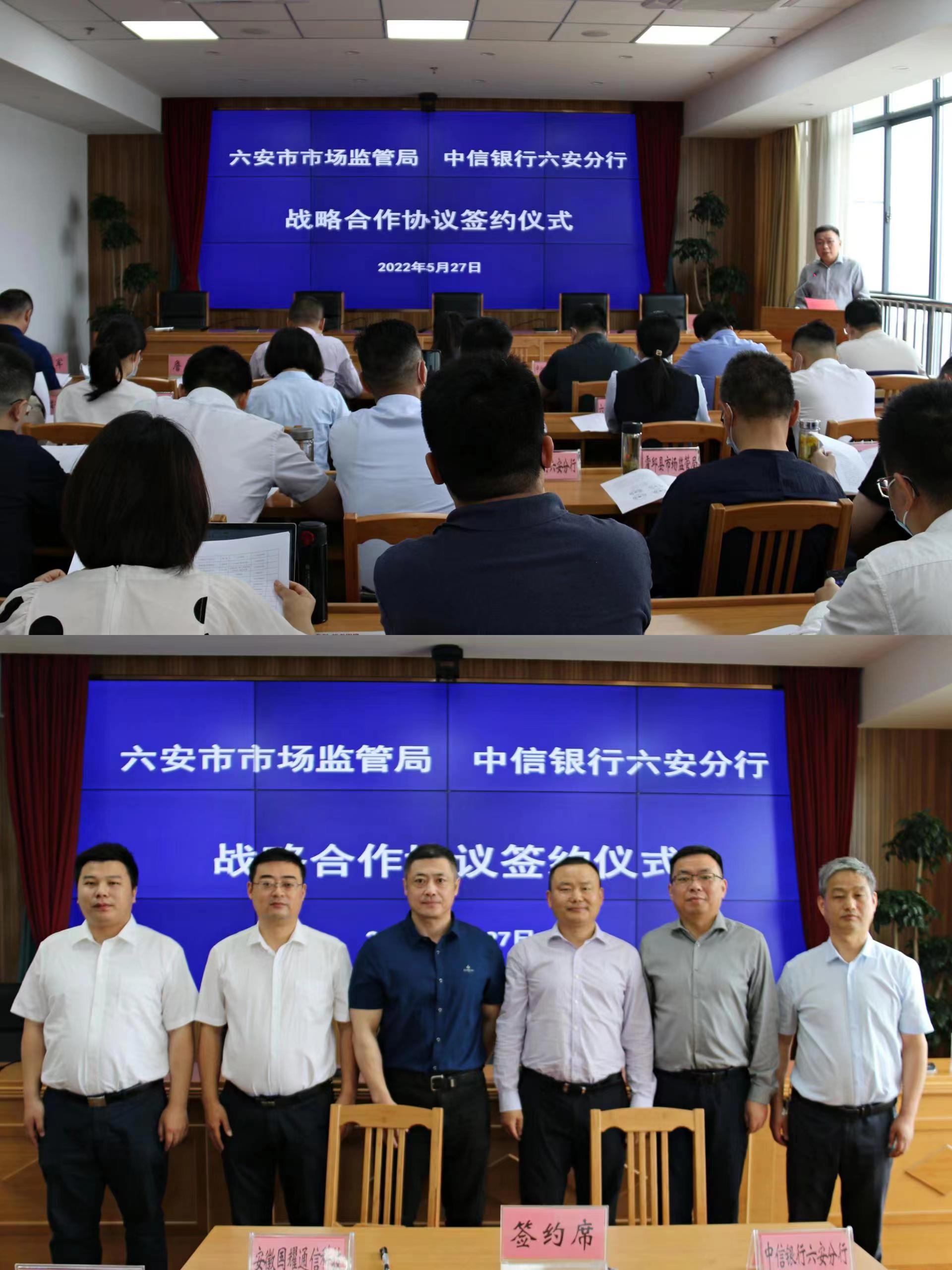 為全面促進知識產(chǎn)權(quán)與金融深度合作,深入推動知識產(chǎn)權(quán)強市建設(shè),六安市市場監(jiān)督管理局與中信銀行股份有限公司六安分行戰(zhàn)略合作協(xié)議簽約儀式暨知識產(chǎn)權(quán)質(zhì)押融資供需對接會于2022年5月27日上午如期舉行。市發(fā)改委、市財政局、市文旅局、各銀行機構(gòu)、市融資擔(dān)保有限公司及市直相關(guān)企業(yè)等領(lǐng)導(dǎo)出席簽約儀式。