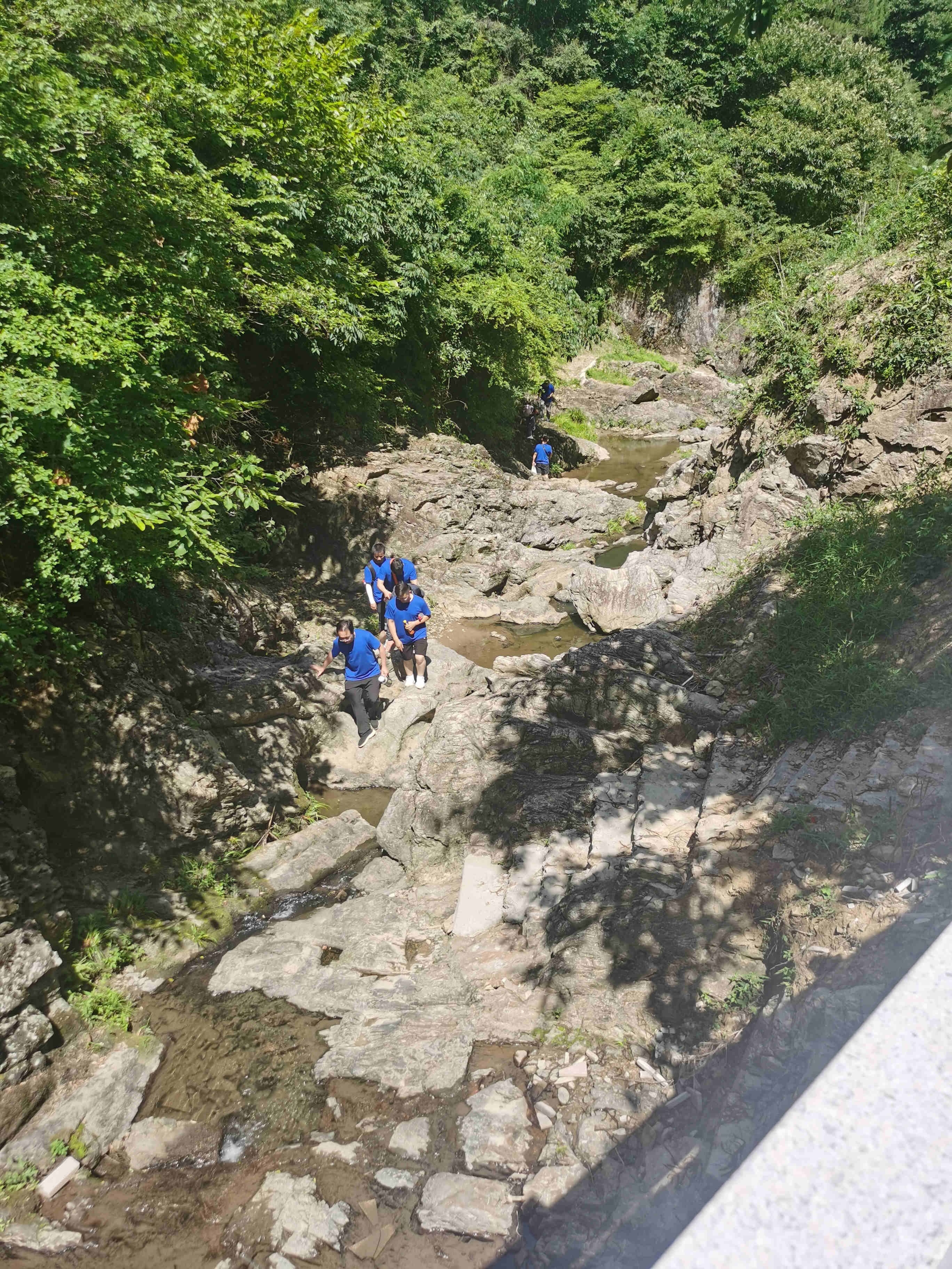 早上10點(diǎn)左右所有人員安全到達(dá)目的地,大家下車后紛紛走進(jìn)狼谷。這里環(huán)境清幽、植被繁茂,奇石、幽潭、飛瀑、清泉星羅棋布,是一處絕佳的探險(xiǎn)勝地。全程4.5公里,山路崎嶇陡峭,大家相互鼓勵(lì)、相互幫助,歷經(jīng)兩個(gè)小時(shí)登上山頂,展現(xiàn)了國(guó)耀人健康、團(tuán)結(jié)、昂揚(yáng)的精神面貌。