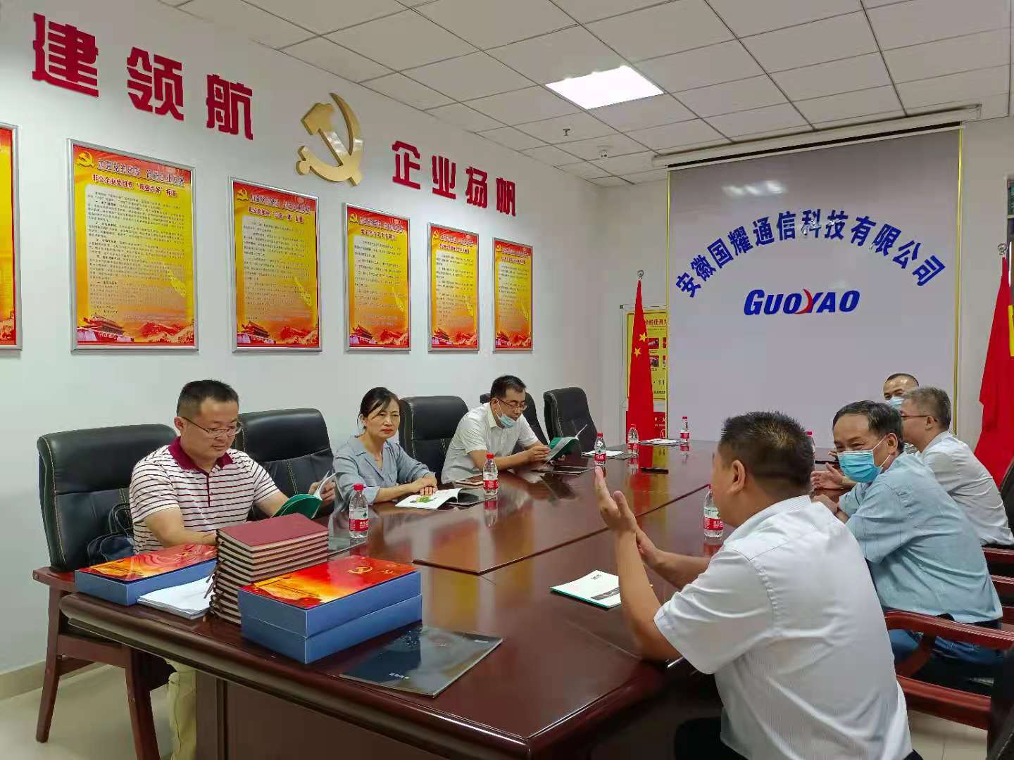 2021年8月26日下午,市委黨史學(xué)習(xí)教育第七巡回指導(dǎo)組副組長(zhǎng)、市委督察考核辦公室副主任安珺等一行蒞臨安徽國(guó)耀通信科技有限公司調(diào)研指導(dǎo)非公企業(yè)黨史學(xué)習(xí)教育工作,市科技局總工程師許有國(guó)、市科創(chuàng)中心主任李冬,市科創(chuàng)中心副主任徐治淮等陪同。